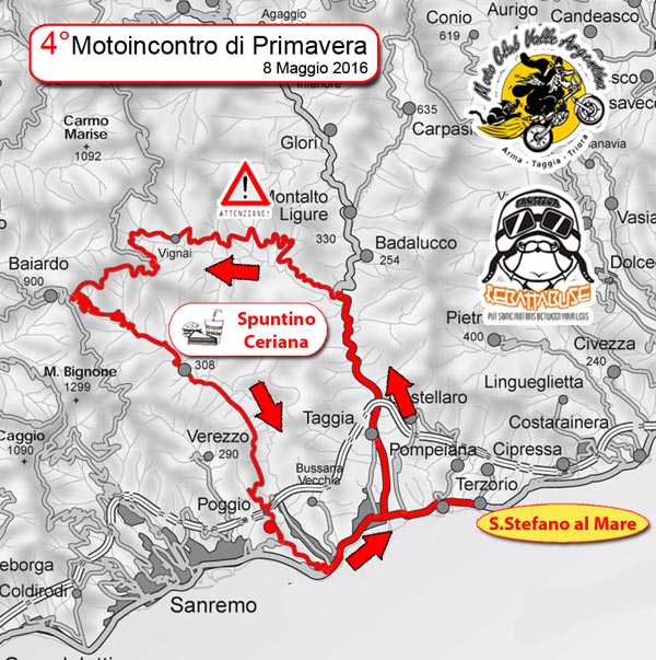 Vi aspettiamo dalle 8,30 alle 10,30 sul Lungomare D'Albertis di S.Stefano al Mare (IM) per presentarvi il 4° Motoincontro di Primavera, organizzato dalla sezione Rebattabuse del Moto Club Valle Argentina. Con l'iscrizione, di 7 euro (5 per i soci FMI) è prevista la colazione presso i bar convenzionati di S.Stefano, un oggetto ricordo della manifestazione ed un piccolo spuntino lungo il giro turistico. Partenza per il giro